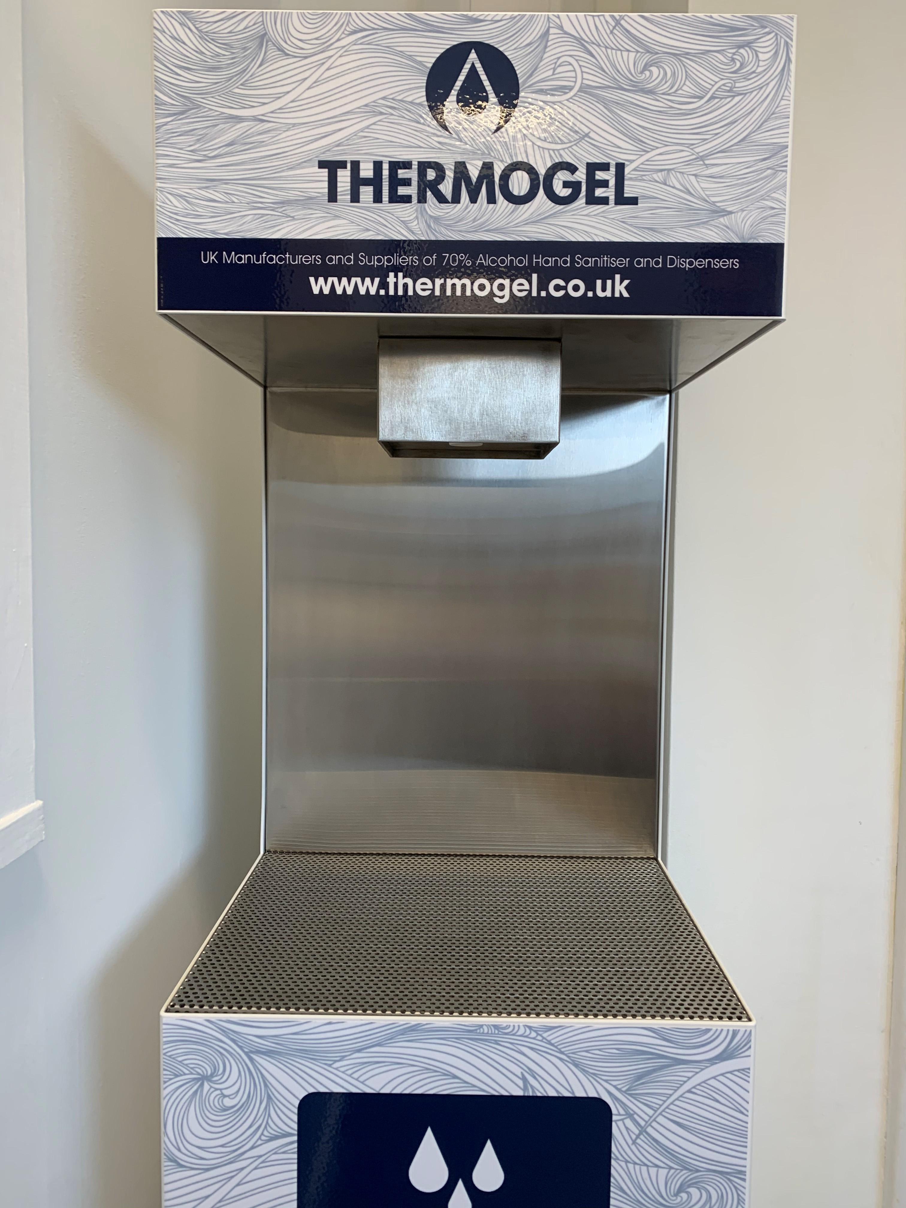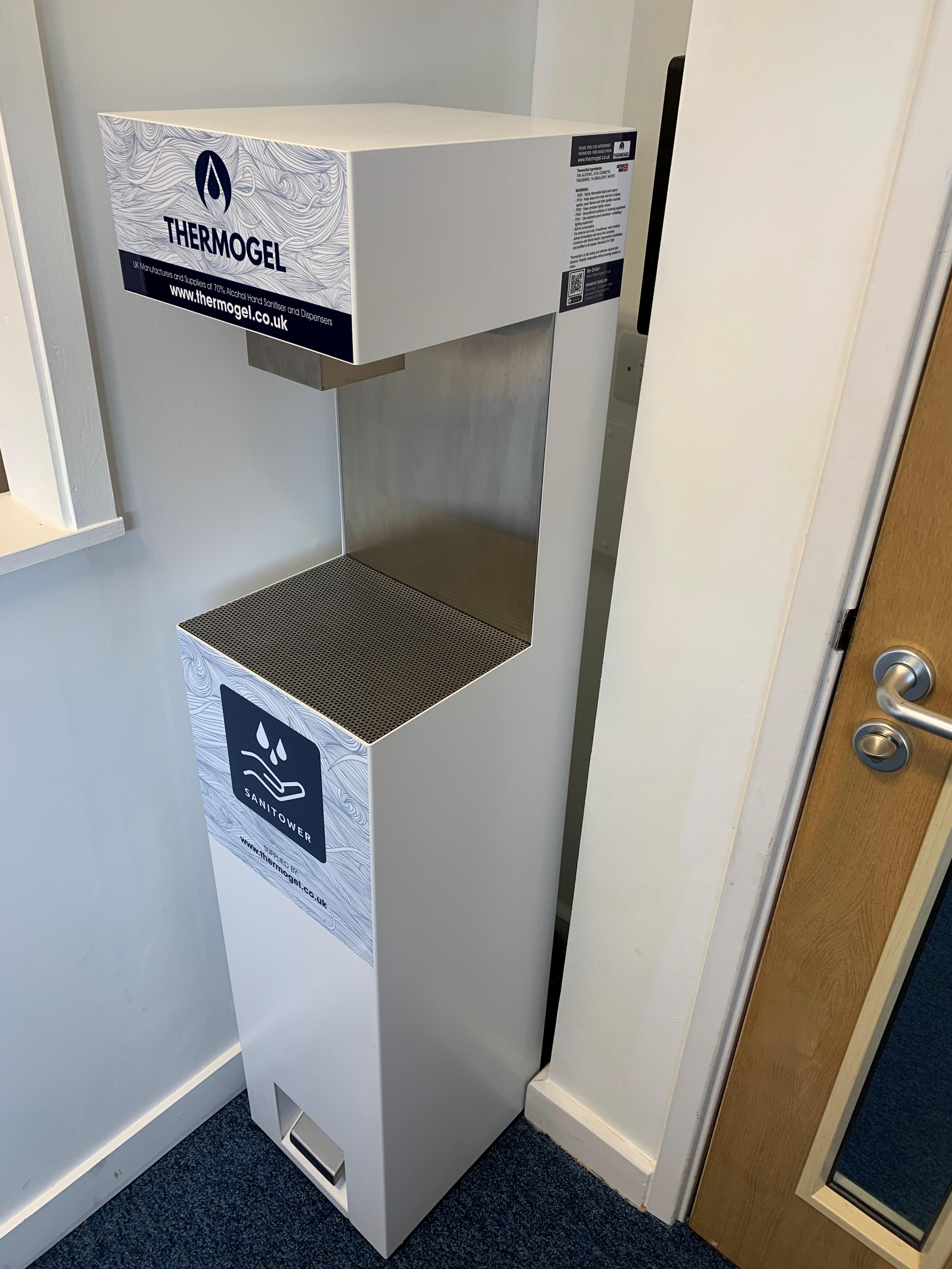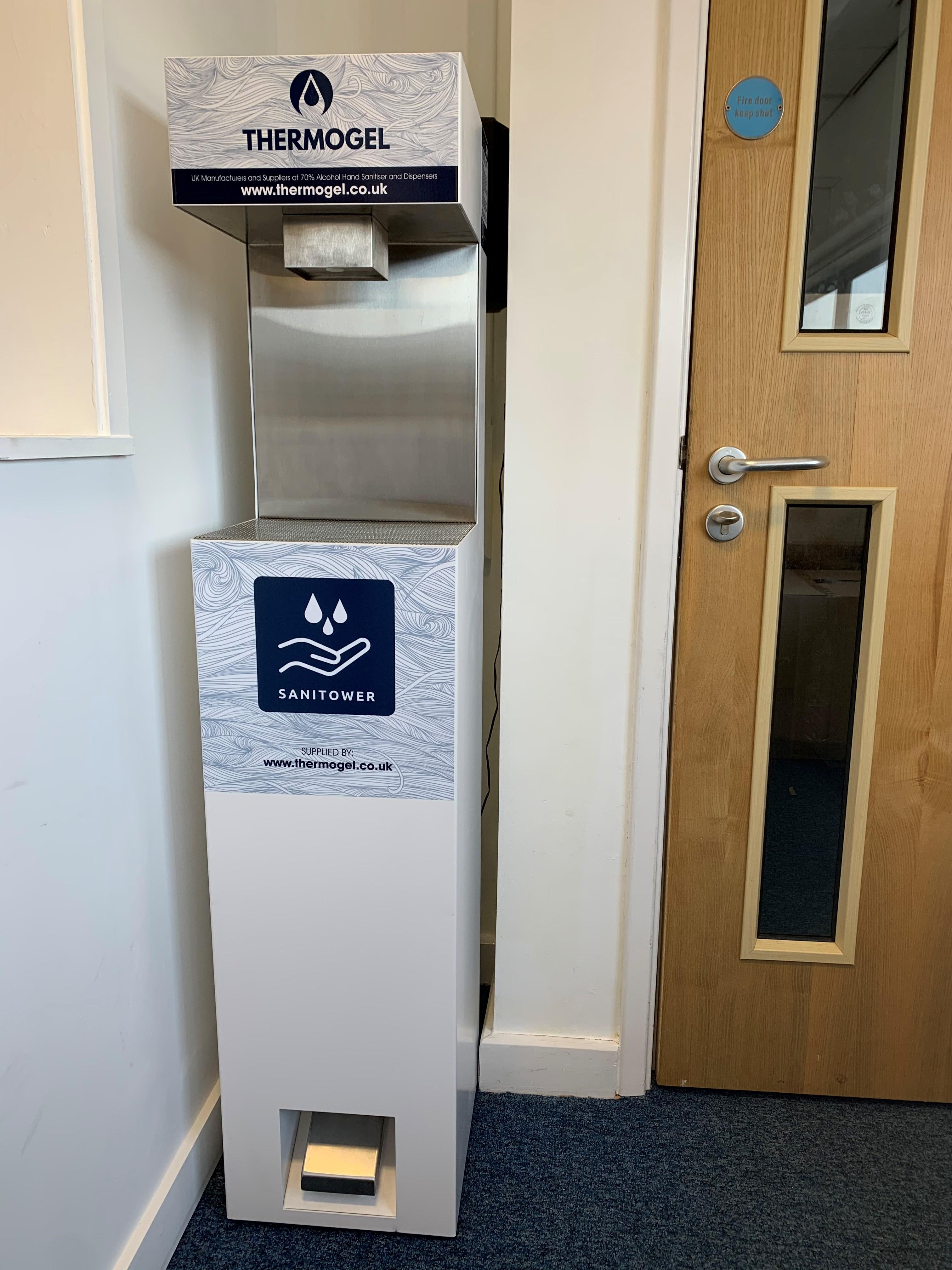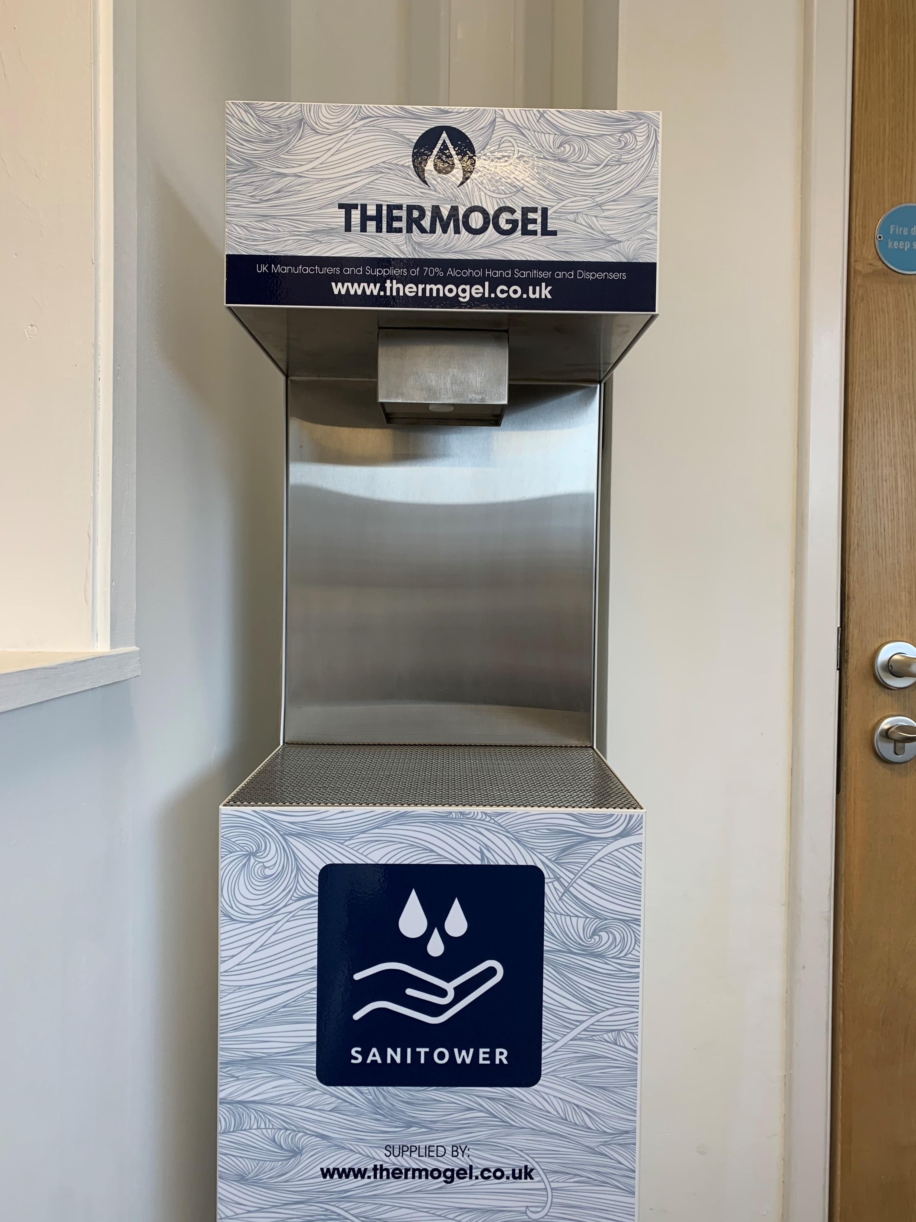 ThermoGel SaniTower is the perfect solution for your business. The communal sanitiser dispenser is footpump operated for touchless sanitising and releases the right single shot dose of alcohol hand sanitiser to keep your staff, members of the public and other visitors to your premises, covered from the spread of virus, bacteria or infection at all times. The ThermoGel SaniTower is low maintenance, durable and looks attractive in an office, public space or business environment. The 5 Litre vessel holds the liquid 70% ThermoGel Hand Sanitiser and can be topped up easily without disruption to users.